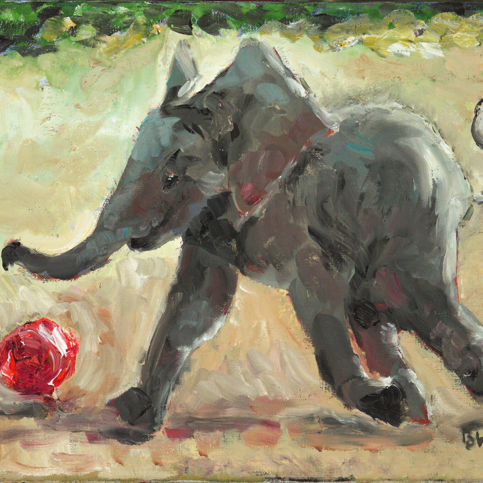 Babyolifant met een bal/ baby elephant with a ball. Olieverf op linnen/Oil on canvas, 40 x 50