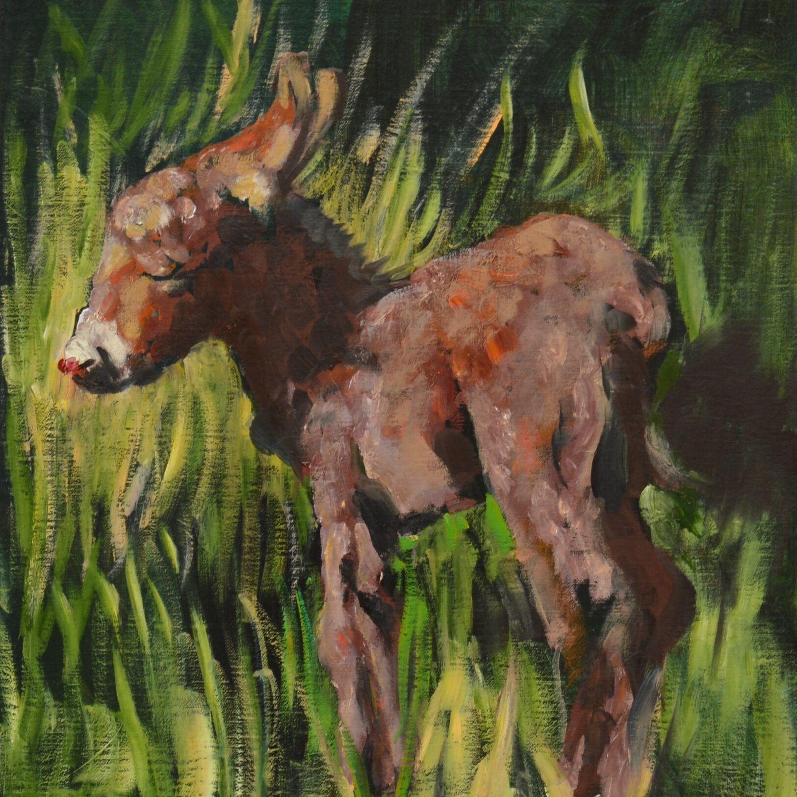 Pasgeboren ezeltje/Newborn donkey. Olieverf op linnen/Oil on canvas, 40 x 50 – 2014