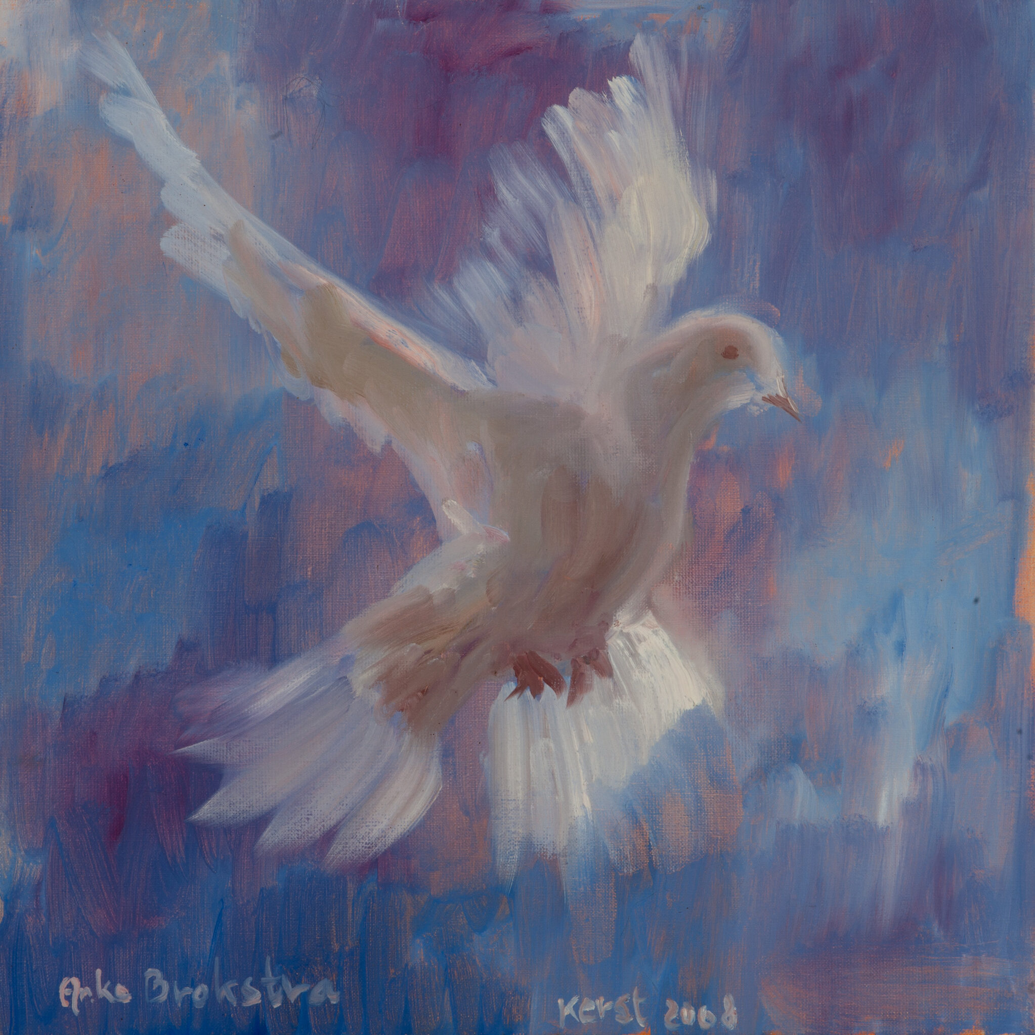 Kerstduif /Christmas dove. Olieverf op linnen/oil on canvas, 50 x 50