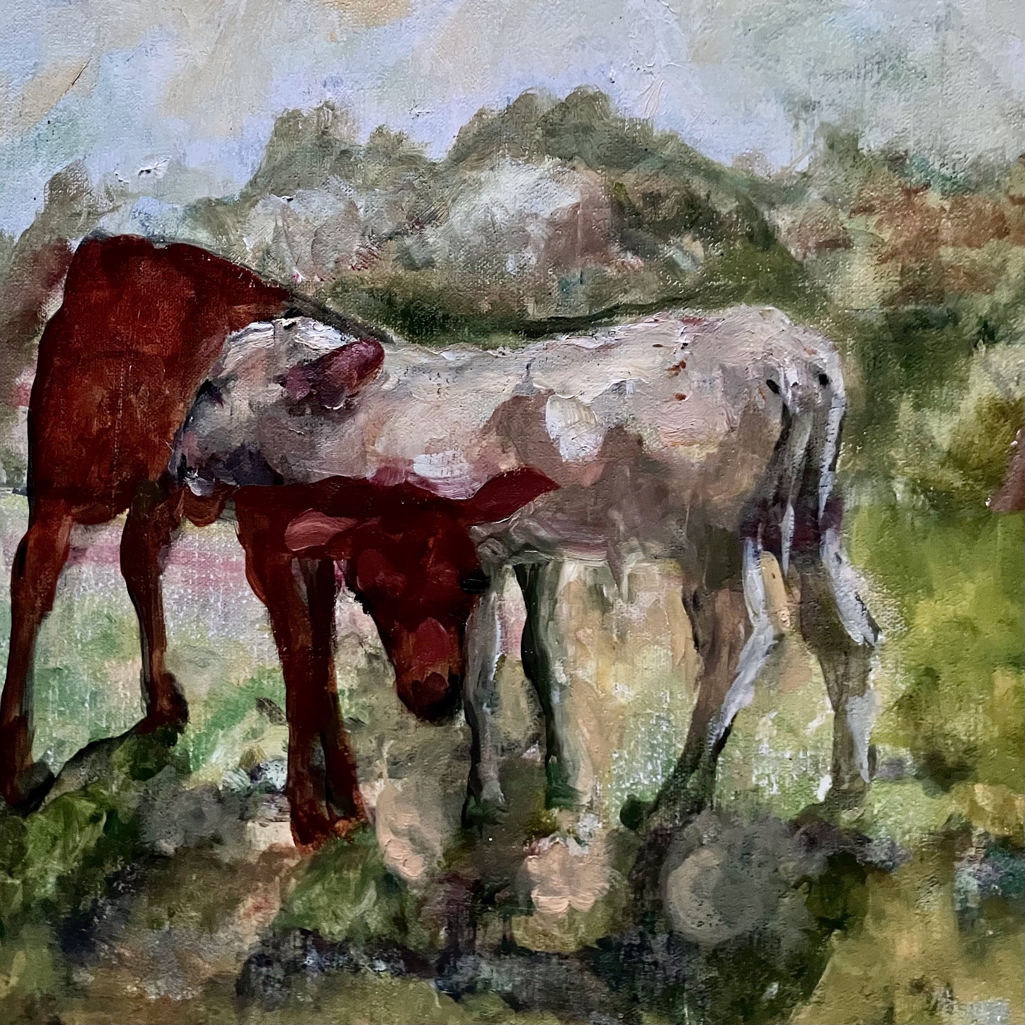 Twee kalfjes /two calves. Olieverf