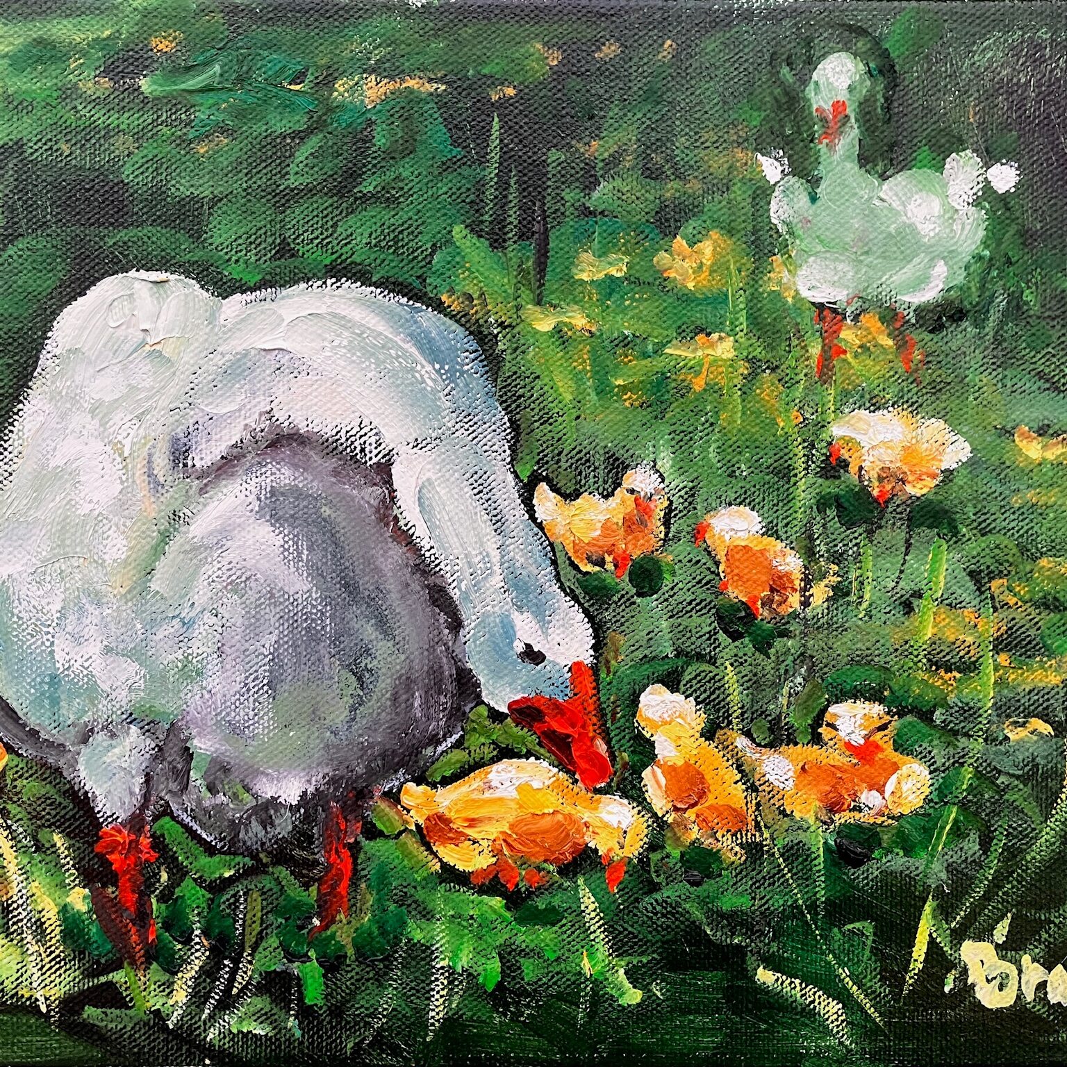Ganzen met kuikens/ Geese with goslings. Olieverf op linnen/Oil on canvas, 30 x 40