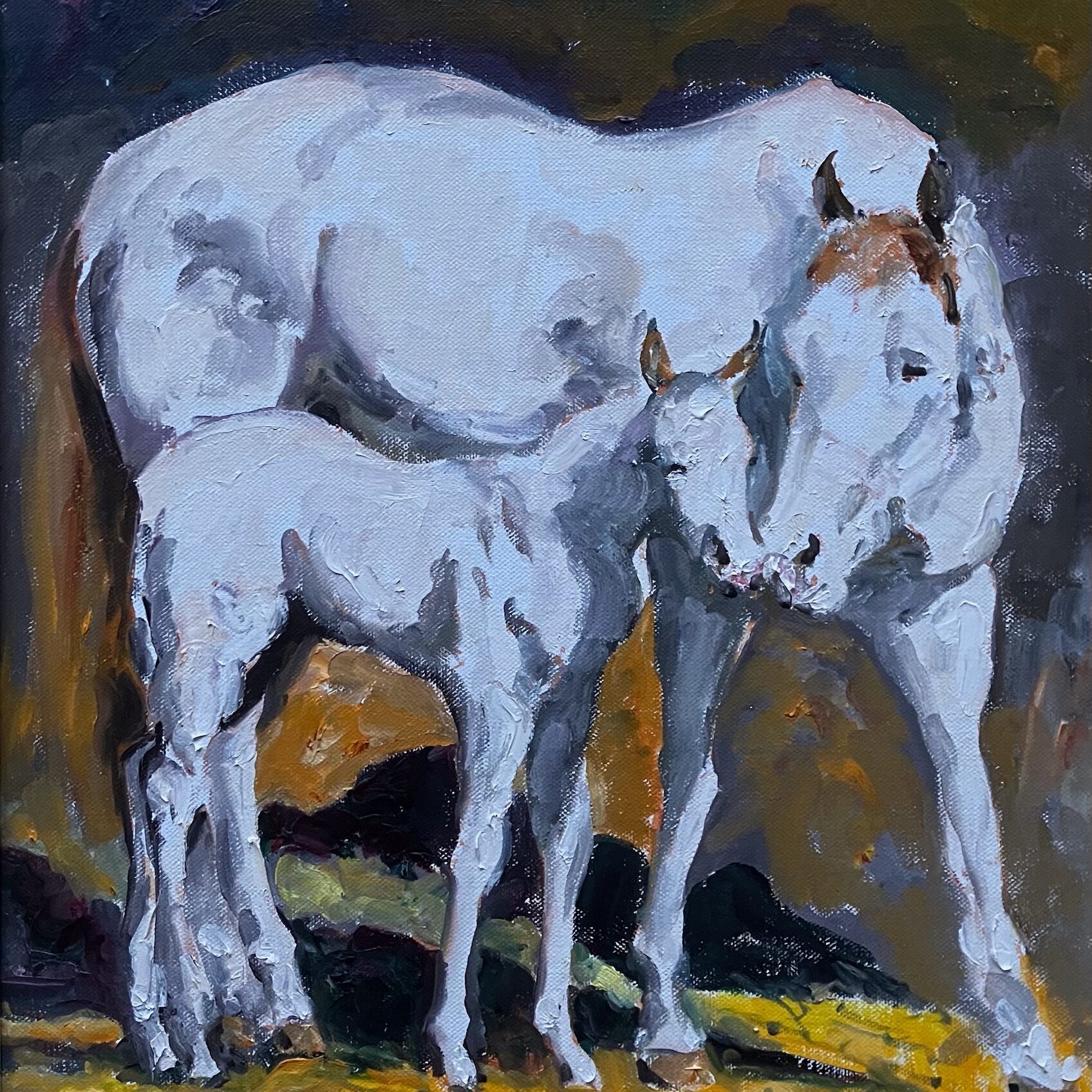 Paard met haar veulen/Horse with her foal. Olieverf op linnen/oil on canvas, 50 x 60